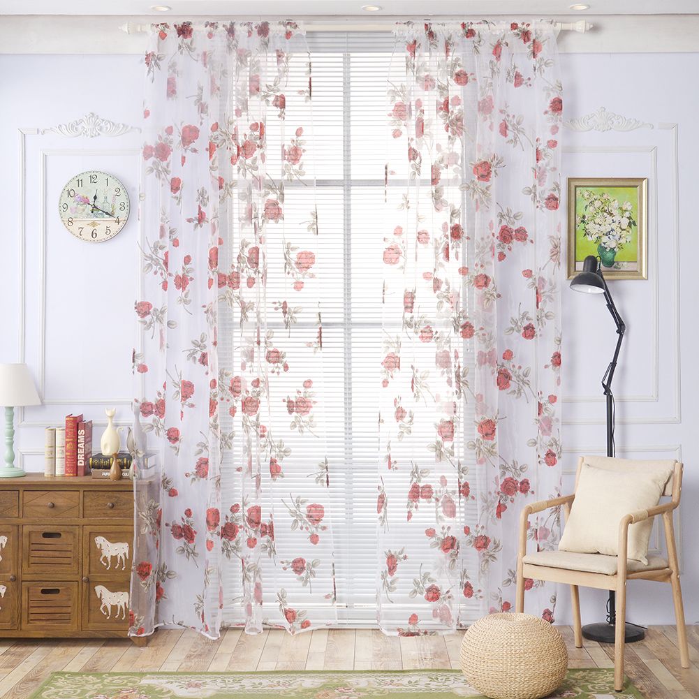 Grosshandel Rose Floral Tull Vorhange Clear Window Screening